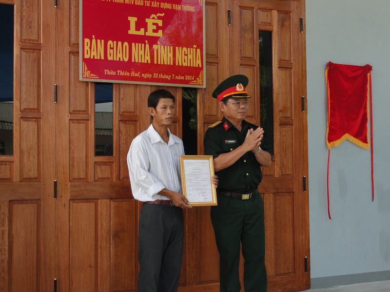 Ngày 22 tháng 7 năm 2014, tại thôn Trừng Hà, xã Vinh Phú, huyện Phú Vang, tỉnh Thừa Thiên Huế. Công ty TNHH MTV ĐTXD Vạn Tường long trọng tổ chức Lễ bàn giao ngôi Nhà Tình nghĩa cho Ông Lê Dưỡng, là gia đình chính sách. Đây là ngôi nhà Tình nghĩa thứ 04 Công ty đã xây dựng và tổ chức bàn giao cho các gia đình chính sách nhân dịp kỷ niệm 67 năm Ngày Thương binh Liệt sỹ (27/7/1947 ...